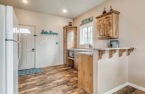 Constructed amongst mature trees and above ground level describes this one bedroom elevated unit that will accommodate 4 people. Offering many amenities of home while experiencing the beauty of the lake and nature around it is sure to satisfy everyone. Several windows throughout allow the light, trees and nature to enter, creating a peaceful getaway. Whether you choose to cozy up in front of the fireplace or lounge on the fabulous private patio, you will be enjoying the surrounding views and wildlife at tree height. Granite countertops in the kitchen, full size stand up shower, A/C/Heat unit, ceiling fans and double pillow top queen mattress makes this rental not only beautiful but comfortable. Enjoy a cool beverage and barbeque outside on your patio while watching boat traffic and catching some sunshine or warm the cool nights by building a campfire in your own stone firepit. With the public recreation areas being only 5 minutes away, you can enjoy the swim beach or access the boat ramps. Boat or jet ski parking is available on site. Feel a sense of security and privacy as the facility has a gated entrance, storm shelter and is situated on 12 acres. Secluded, yet only a few miles from town. Whether it is a weekend retreat or an entire week vacation, this unit is sure to meet your needs. Come experience the space that elevates to 12 feet off the ground..There is a fish cleaning table and freezer availability on site, hiking trail, swingset and horseshoe pit for entertainment.