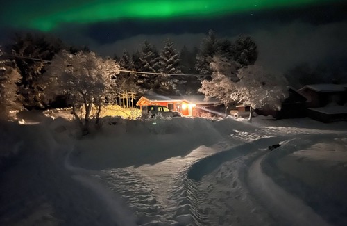 Placed just by the waterfront, the cabin and its surroundings will give you a timeout from the rest of the world, secluded and quiet. You can enjoy a panorama view over the lake from the cabin´s living room or terrace, watch as the fish jumps on the lake´s surface or simply just enjoy the quietness and the birdsong. Sitting by the fireplace and enjoy the nice view is pure magic! In the winter, just go outside on the terrace and watch the spectacular northern lights or the full moon rise above the mountaintops.
