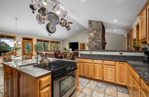 Step inside and you’ll immediately feel at home in the open-concept main living area. The chef’s kitchen, complete with quality appliances and ample counter space, flows seamlessly into the dining and living spaces—creating the perfect setting for shared meals and cozy conversations. Just beyond the great room, step out onto the expansive deck where stunning forest and valley views stretch out before you. It’s the perfect spot to enjoy a morning coffee, an afternoon glass of wine, or an evening under the stars.