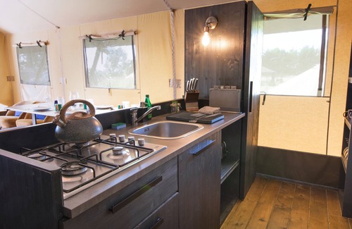 Our luxury Safari Lodges are beautifully built in timber and canvas and offer the ultimate in glamping luxury. Each sleeping up to 9 people they are perfect for families or larger groups. Each has mains power, lighting, hot water and gas heater, a fitted bathroom with toilet, sink & shower and a well equipped kitchen with hob, sink, fridge freezer, microwave & kettle. They also boast a large dining table, indoor and outdoor sofas, picnic tables and are stylishly furnished throughout.