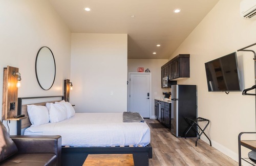 Inside every Dwelling, you will find a great balance of modern designs, classic touches, and technology features. This unit can accommodate up to 3 guests with a king bed and a pullout sofa sleeper. **This unit is ADA Accessible**