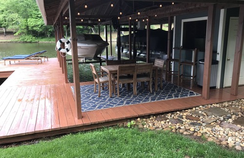 Rent a boat, get ice cream or deli sandwiches at the marina 1 mile away. (Pontoon rental super conveniently available right at the house! please inquire ) Boat or drive to waterfront dining. Enjoy the large, quiet cove swimming right at the house w/a large area for tubing or water skiing just 1 house down at the cove's entrance. Only 5 minutes to the main lake for even bigger water if you wish to explore! Kayak or canoe up Great Creek & enjoy the scenery. Have fun trying your skills at fishing off the dock!