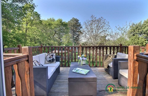 The cottage is located on the 1st floor of a house, access is via an outside staircase. Arranged on the same level, it offers you: a large living room of 82 m², opening onto a balcony, with lounge area, fitted kitchen and living room. For the bedrooms: a first landing bedroom (1 bed 90) serving a bedroom with 1 bed 140 and a bathtub, and a second bedroom (1 bed 160) with balcony, and having a shower room/wc rooms and a small relaxation area on the mezzanine (Japanese-step staircase not recommended for children). You will also have a separate toilet and a laundry area. Outside: you enjoy an enclosed courtyard with a large wooden terrace and the covered relaxation area: a 2-seater spa and a 2-seater sauna (accessible until 10 p.m.). You will have access to the garden and parking (shared with the other cottage). The cottage is adjoining cottage 15810 on the ground floor and near a trailer referenced 15811. In the calm of a green countryside, and only 13 km from Vannes, come and relax with family or friends in this pretty Breton house. Ideally located, you will be close to many tourist sites and towns such as Auray, Carnac, Quiberon, the Gulf of Morbihan, Ste Anne d'Auray etc... From the cottage, you will quickly reach the expressway to criss-cross our beautiful department. The cottage is also located near the GR of Ste Anne d'Auray and is nestled in lush greenery. For the joy of young and old, the owners will share their love for animals with you on the property: a pony, cats and 2 dogs. Here, pets are welcome!