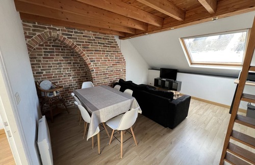 Welcome to the Sous les Toits apartment located in Amiens, just a 15-minute walk from the famous Cathedral and the historic heart of the city! Ideal for family stays, with friends or for business trips, this apartment can accommodate 4 to 6 people.The apartment includes an equipped kitchenette, with everything you need to prepare your meals (hobs, microwave, fridge, crockery and kitchen utensils). The living area consists of a sofa bed for two people in the living room and a dining area. You will also find a bedroom with a double bed and a mezzanine with a double bed.The private bathroom is equipped with a shower and a vanity unit and a toilet.This warm and well-located accommodation allows you to enjoy Amiens on foot while benefiting from a pleasant and functional space for a successful stay.Cathedral: 16 min walkShopping street (rue des Trois Cailloux): 14 min walkHortillonnages: 22 min walk
