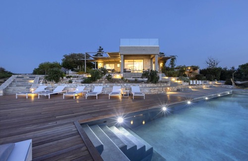 Welcome to Daedalos, a stunning designer luxury villa perched majestically atop a hill, unveiling wide view of the resplendent Souda Bay in Greece. The property has been transformed to offer a unique vacation experience. Our villa is located just outside the beautiful village of Plaka, in Apokoronas district of Chania, and stands isolated in a 12000sqm private green hill. This unique site, with unobstructed views and absolute privacy, is the ideal place for truly magical vacation. Villa Daedalos sleeps up to 6-8 guests and includes an infinity pool, WiFi and indoor / outdoor games areas.