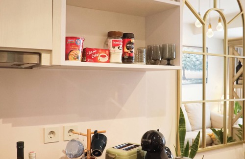 Escape to this apartment in picturesque BSD, fully equipped. This gorgeous rental features 1 bedroom with a king bed, a cozy living room with L shape couch, and a modern bathroom with a bidet and shower. Guests can also enjoy amenities like AC, a washing machine, and WiFi. Book now and enjoy everything this apartment has to offer.
