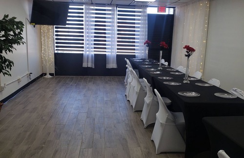 .Amenities: free 4 Tables (6ft) & free 24 chairs, Bluetooth speaker, Wi-Fi, 55 inch tv, selfie wall, wireless mic (by request)