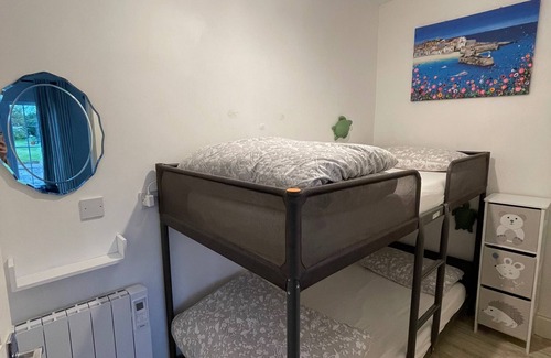 - The bunk bed is preferably suited for kids or adults up to 70/80kg. No room for travel cot in bunk bed room. Space for travel cot in main bedroom.