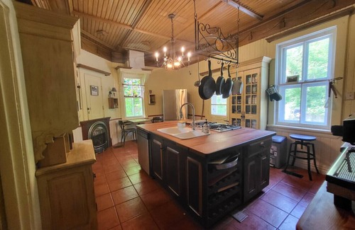 Experience our gardens in this Mongolian dwelling, thoughtfully set on the grounds of our beautifully preserved 1898 Victorian manor. This spacious Ger (true name of a Yurt) features four single beds with authentic sheepskins (additional mattresses available), a cozy woodstove, and a fridge for your essentials.