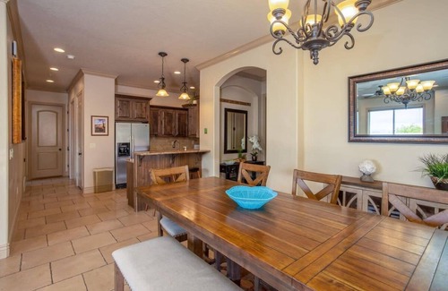 The Master bedrooms feature a king bed with a Jacuzzi tub and walk-in shower. You will enjoy the large walkin closet just steps from the laundry room. The kitchen is fully equipt to cook for the entire group. The back patio features a BBQ grill and sitting area with some nice shade. The garage is great for keeping your cars cool in the Summer. There is a laundry room in case you need to dry towels or do a quick load during your visit.