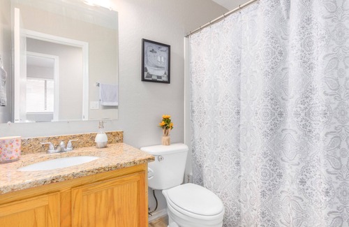 This captivating 3-bedroom, 2-bathroom home, just minutes from hiking trails, offers modern comfort and outdoor serenity. Its open-concept living area features an impressive 84" flatscreen TV, while the well-equipped kitchen and dining area provide space for family meals. The backyard is an oasis with a cozy fire pit and cornhole boards, ideal for outdoor gatherings. Located in a peaceful neighborhood, this home is perfect for nature enthusiasts and those seeking a relaxing retreat.
