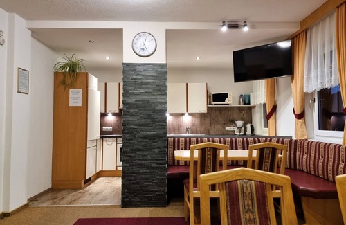 Large, beautiful cottage "Apart Birgit", surrounded by meadows. In the district of Obermühl 1.3 km from the centre of Kappl, 10 km from the centre of Ischgl, 20 km from the centre of Landeck, in a sunny position on a slope. For shared use: table tennis. In the house: storage room for skis, central heating system, ski boot dryer. Bread roll service. Parking (for 6 cars) on the premises. Shop 1.3 km, grocery 1.3 km, restaurant 1 km, bus stop "Kappl Obermühl" 190 m, railway station "Landeck-Zams Bahnhof" 22.6 km, outdoor swimming pool 9 km, indoor swimming pool 9 km. Walking paths from the house 100 m, ski lift 3 km, gondola lift 3 km, ski bus stop 10 m. Please note: ski bus (free of charge). Free ski bus service to the ski region Kappl/Umstieg in Skigebiete See, Ischgl and Galtür möglich. In case of good snow conditions, the house is accessible on skis. Please note: the owner lives in the same residence. Member for Silvretta Card Premium: valid from summer 2023 - unlimited use of all open mountain railways and local public transport in Paznaun, Samnaun and Montafon/Brandnertal, as well as unlimited use of the Silvretta High Alpine Road.