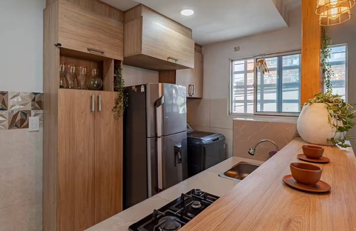 Con 2 habitaciones, balcón privado, WiFi rápido, cocina equipada y Smart TV, es el espacio perfecto para descansar o trabajar.