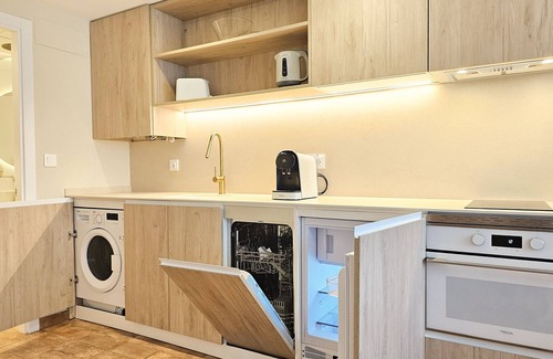 Nice studio in a modern building with all the comforts. Located 200 meters from the City of Arts and Sciences on a quiet and sunny avenue, it is the perfect place to enjoy Valencia. You can be in the very center of the city, close to Carmen, Malvarrosa beach, Albufera and other areas of the city. Fully equipped and available to accommodate up to 2 people, WiFi, Parking, Air Conditioning.The 30 m2 studio apartment has the following spaces:- Living-dining room with 140x190cm double sofa bed, dining table, HD-TV Smart TV.- Practical fully equipped kitchen, with dishwasher, washing machine-dryer, microwave-oven, ceramic hob, refrigerator/freezer, Nespresso coffee machine, toaster, tea kettle...- Designer bathroom equipped with shower, toilet and sink.It is delivered with bed linen, 1 hand towel and a bath towel per person, iron and ironing board, hair dryer, welcome kitchen amenities: (1 scouring pad, 1 kitchen cloth, 2 garbage bags, 1 washing machine soap, dishwasher, 2 toilet rolls per bathroom), bathroom amenities: (shampoo and gel) and coffee capsules and 1.5l bottle of water. From mineral water.Services and common areas:- Parking available. On request, price €15/day.- Wi-Fi included.- Central hot/cold air conditioning included.- Guest assistance telephone number for communication of incidents 24 hours a day.- Check in person with tourist information.Attention to guests:We would love to attend and advise you about everything you can do in the city of Valencia: gastronomy, sports, museums, culture, leisure, shopping, children, business...The neighborhood:The Quatre Carreres neighborhood is a residential neighborhood in the best area of Valencia surrounded by green areas where you can walk and unwind. It is a very quiet area, in the heart of Valencia, the Jardines de Río Turia, a haven of peace that connects with the rest of the city on foot and by bicycle and is perfect for exercising, playing with children, walking or doing a picnic. A few minutes away are three of the largest and well-equipped shopping centers in Valencia: El Saler, El Aqua and El Corte Inglés, as well as supermarkets, pharmacy, cinema etc...The Quatre Carreres district is made up of the neighborhoods of Monteolivete, En Corts, Malilla, Fuente San Luis, Na Rovella, La Punta and the City of Arts and Sciences, which includes the most emblematic monument of Valencia, the City of Arts. and Sciences, which gives it a unique appeal.In addition, this location will allow you to be one step away from El Roig Arena Valencia, the most modern pavilion in all of Europe, a multi-space, multi-use and flexible indoor venue, prepared to hold events simultaneously 365 days a year. It hosts top-level international sporting and musical events.How to get:- From the airport.From the Manises airport, you can rent a car or use public transportation. Take the metro to the city center and get off at the Xativa stop. From there, you can take the number 35 bus.- By Train or Subway.From the main exit of Estación del Norte, cross Xativa street and you will arrive at Marqués de Sotelo street. From there, you can take bus number 35 and get off at the Instituto Obrero-Ciutat de les Arts stop for the apartment.- By car.From the north (coming from Barcelona):Continue on the AP7 motorway to the Sagunto tollbooth.Take exit 51 towards Valencia Norte.Continue towards the city on Avenida Cataluña.Follow the signs to the City of Arts and Sciences until you reach the apartment.- From the south (coming from Alicante):Continue on the A7 motorway.- From Alicante and Albacete on the V31.Follow the signs to Valencia South.When you arrive in the city, follow the signs for the City of Arts.- From the west (coming from Madrid and the airport):Continue on the A3 motorway.Take the exit towards Alicante and Albacete.Continue on the V30 detour.Take the exit to CV500.When you arrive in the city, follow the signs for the City of Arts.How to move:A few meters from the building there are:-Bus: Stop 2041 Professor López Piñero (pair) - Institut Obrer de València (13, 15, 24, 25, 95).- Taxi.- Bike lane.House's rules:- No parties.- No Smoking.- No pets.- No more people than reserved.- Respect rest hours, from 10:00 p.m. to 10:00 a.m.- Responsibility, respect and good behavior towards all the use facilities and the neighbors.- No Garbage in the accommodation. Garbage containers are found in the street, Valencia has a daily garbage collection service of 4 types: paper / glass / containers and plastics in addition to the rest.