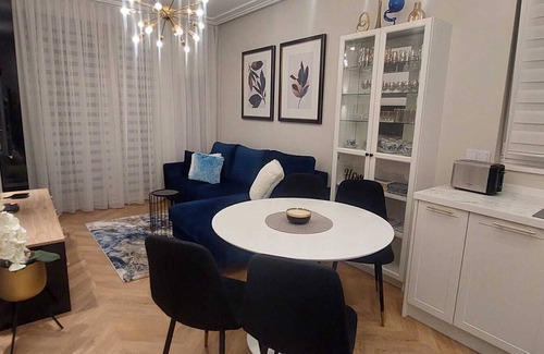The apartment, located on the second floor of a modern building in Ozarow Mazowiecki, is an excellent choice for families, couples and business travelers who value comfort, functionality and interior aesthetics. The 45,47 m² space was designed for the comfort of up to five people. The apartment has two bedrooms - one with a large double bed, the other with a single bed - and a sofa bed in the living room. The bright, modern interiors are decorated in muted colors with elegant accessories such as paintings, mirrors and decorative textiles. A spacious living room with a comfortable sofa and Smart TV is the perfect place to relax in the evening, while high-speed Wi-Fi allows for both entertainment and remote work. A fully equipped kitchenette with an induction cooktop, oven, dishwasher, coffee maker and toaster allows you to prepare meals at home. There is also a kettle, refrigerator with freezer and a set of dishes and cutlery. The bathroom has a bathtub, washing machine, laundry dryer, fresh towels and a set of toiletries. An additional feature is a furnished balcony, ideal for morning coffee or evening relaxation.