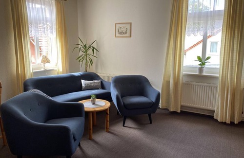 4 comfortably furnished apartments for 2-4 pers. (3 apartments with balcony) in a quiet downtown location. No kitchens available, as breakfast available. A few minutes from the Bodetal, Bahnhof u. Bodetal-Therme - ideal starting point for hikes. Outdoor seating, on-site parking. Reform business belonging to the pension, about 15 minutes walk from the pension.