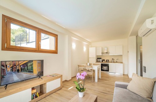 Located in Carlazzo, the holiday apartment "5" offers guests a fantastic view of Lake Como. This 50 m² property is part of a building with an elevator, consists of a living room with a sofa bed for 2 people, a well-equipped kitchen, 1 bedroom, and 1 bathroom, and can accommodate 4 people. Additional amenities include high-speed Wi-Fi (suitable for video calls), a smart TV with streaming services, air conditioning, a washing machine, a dryer, a dishwasher, and beach/pool towels. Moreover, there is a shared outdoor area with a garden, a pool, and an outdoor shower, and a shared sauna is available on the property. Guests also enjoy access to a private terrace. For families traveling with young children, a baby cot is provided.