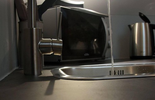The kitchen is equipped with: refrigerator, electric baking plate, microwave, oven, dishwasher, a vacuum hood, a Nespresso coffee maker, a filter coffee maker, a toaster and a kettle.