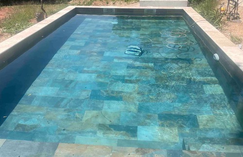 This vacation rental offers access to a shared outdoor area with a pool, open terrace, and covered terrace.