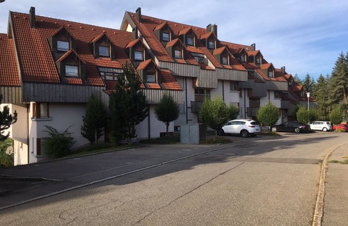 Our 46 sqm two-room apartment with balcony is located in a pleasantly quiet, clear area in Schonach, just outside the village on a hillside at about 980 m. There are only 8 steps from the parking place / house entrance to the apartment. No pets please!