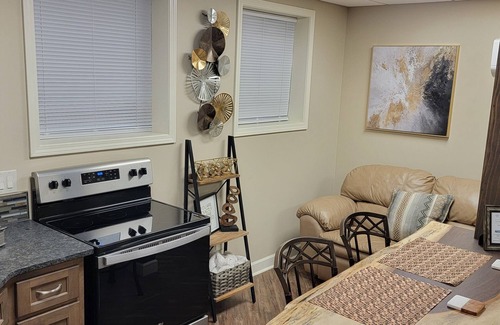 We have a self-sustained basement apartment (built as an in-law suite) for rent. It has a King-sized bed, a Full Kitchen, Full Bath, High-Definition 43" flat screen TV and Washer & Dryer. The apartment has its own separate entrance with a digital lock. A Very Private, Comfortable get away. We include free high-speed internet, free movies and TV shows and Purified Water. We are located at the base of the beautiful Blue Ridge mountains. Boone and Appalachian University are only 40 minutes away. Blowing Rock, Hiking, sightseeing and watching the leaves change color is a short 1/2-hour drive North. Charlotte, NC is an hour South. Grandfather Mountain is only an hour away. We are located 2 miles off highway 321 for easy navigation to any of those areas. Downtown Lenoir is 10 minutes away, and The Coves River Club is only 20 minutes away.