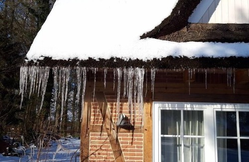 Dear holiday guests, In our modern, thatched country house, we offer you a very comfortable 75 sqm apartment in the 1st floor for up to 4 people - flooded with light and lovingly furnished with a separate entrance. The open interior design connects residential, dining,- and kitchen area. The modern fitted kitchen offers all comfort and is well equipped. 2 bedrooms with a view of the tree tops of the historic oak park directly on the back of the property. The new shower room with daylight has plenty of space for all utensils that need the woman and man. You are welcome to use the cozy place under the old cherry tree in the garden for a relaxed break after a bike tour or a heather hike.
