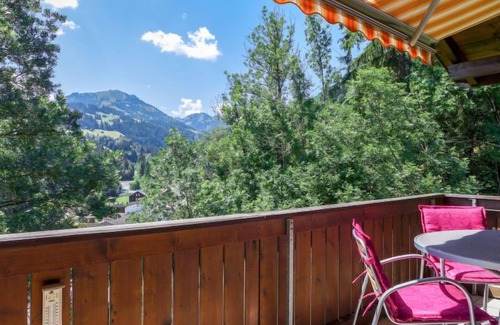 Apartment house, 3 storeys. In a sunny, elevated position in the residential district. In the house: storage room for bicycles, storage room for skis. Parking at the house. Shop, restaurant 200 m, 5 minute walk to the centre, bus stop 200 m, railway station 500 m, outdoor swimming pool 900 m. Golf course (18 hole) 10 km, tennis 700 m, walking paths from the house 50 m, gondola lift 750 m, skisport facilities 2 km, sled run 8 km, cross country ski track 8 km. Nearby attractions: Gstaad, Glacier 3000. Well-known ski regions can easily be reached: Rinderberg - Skiwelt Gstaad, Sparenmoos Langlaufparadies. Hiking paths: Naturschutzgebiet Sparenmoos.