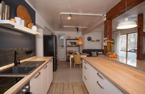 The Eliese vacation apartment is located in the Neuendorf district of Suhl and was newly opened in 2023. You are here in a village-like part of Suhl, which is nevertheless only about 10 minutes' walk from the city center. The "Goldener Hirsch" restaurant is just a 2-minute walk away and serves regional specialties, while the beer garden invites you to linger in the summer months.