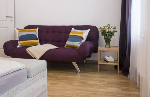 Beautifully decorated with design furniture, Leon Apartments have a separate bedroom and a living room with sofa beds, a seating area and a flat-screen TV. There is also a washing machine and a private bathroom with a bath and a hairdryer.