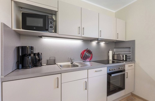 The apartment has a size of approx. 45 square meters and is suitable for up to 4 people + baby crib if required. The eat-in kitchen on the first floor is fully equipped incl. Smart TV. There is a double bed in one bedroom and two single beds and a Smart TV in the second bedroom. Bed linen and towel package are included. Fly screens are fitted to all windows. Underfloor heating in all rooms. The bathroom has a WC and shower with rain shower, as well as a hairdryer.