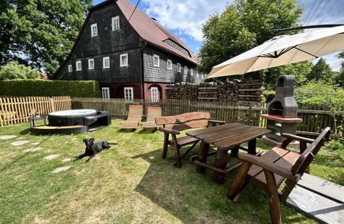 Historical 2-family house, 2 storeys, built in 1790, renovated in 2022. 500 m from the centre of Großschönau, 12 km from the centre of Zittau, 30 km from the centre of Löbau, 20 m from the river. For shared use: natural state property (fenced). Private: hot tub. Bread roll service. Shop 500 m, supermarket 200 m, restaurant 400 m, bakery 300 m, bus stop "Großschönau Weinhaus" 700 m, railway station "Großschönau Bahnhof" 1.5 km, outdoor swimming pool 1.5 km, bathing lake "Olbersdorfer See" 13 km. Walking paths from the house 5 m, ski lift 4 km, ski school 4 km, cross country ski track 4 km. Well-known ski regions can easily be reached: Waltersdorf 4 km. Well-known lakes can easily be reached: Olbersdorfer See 13 km. Please note: Additional accommodations can be booked.