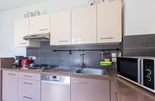With a view of the mountain, the holiday apartment Gab's House Vallée in Thyez is situated on one level in a detached house. The 73 m² property is completely renovated and consists of a living room, a fully-equipped kitchen with a dishwasher, 2 bedrooms and 1 bathroom and can therefore accommodate 6 people. Additional amenities include high-speed Wi-Fi, a fan, heating, a washing machine as well as a TV with a DVD player. In addition, a table tennis table is available for your use. A baby cot and a high chair are also available.