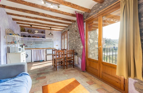 The holiday apartment La Guarta in Graus is the ideal accommodation for a relaxing holiday with mountain views. The 50 m² property consists of a living room with a sofa bed for 2 people, a kitchen, 1 bedroom and 1 bathroom, accommodating up to 4 guests. Additional amenities include Wi-Fi, television, fan, washing machine, as well as books and toys for children. A ping-pong table, 2 cots and a high chair are also available. This accommodation does not have air conditioning. The apartment features 2 private balconies where you can relax in the afternoons.