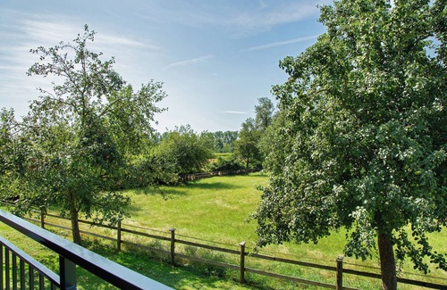 This vacation rental features a private balcony that offers gentle views on the paddock and access to a shared outdoor area with a garden and a covered terrace.