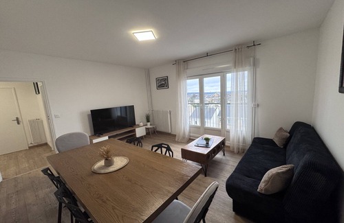 This stylish and fully renovated apartment offers a peaceful and practical stay in the southern part of Le Mans, just minutes from the iconic 24 Hours circuit. Ideal for families, groups, or professionals, it accommodates up to 7 guests and features a private balcony, modern amenities, and a quiet residential setting—perfect for both short getaways and longer stays. The apartment includes two comfortable bedrooms—one with a queen-size bed, the other with a double and a single bed—plus a cozy living room with a sofa bed and access to a sunny balcony. A modern bathroom with a walk-in shower, a fully equipped kitchen with laundry area, and private parking complete the experience. High-speed Wi-Fi and fresh linens are included for a hassle-free stay. Guests benefit from premium concierge services by Rêve au Mans, including breakfast delivery, private chef, driver, grocery shopping, and more. Whether you're visiting for motorsport events, business, or leisure, this apartment offers a smooth and harmonious stay in Le Mans.