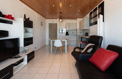 This one-bedroom apartment is designed to accommodate up to four guests and offers a comfortable and well-equipped living space. The bedroom features a double bed with duvet for two people and a digital TV for added comfort. The living room includes a sofa bed for two people with duvet for added comfort, making it ideal for families or small groups. The apartment is non-smoking, pet-friendly (small pets welcome) and designed without carpets to maintain a clean and allergy-friendly environment. Situated in the attractive Mariakerke dike area, this apartment offers stunning sea views and open vistas, with a southerly orientation for optimal sunlight. The living room is a perfect place to relax, with a coffee table, side table, DVD player, digital TV, digicorder, Blu-ray player, Wi-Fi and a music system, ensuring entertainment and comfort throughout your stay. The location provides easy access to the surrounding area, with local shops and public transport options close by, allowing you to conveniently explore Ostend and its attractions. The open kitchen is fully equipped with modern appliances such as an oven, microwave, kettle, toaster, blender, fridge-freezer, dishwasher, Senseo coffee machine, traditional coffee machine and ceramic hob, and provides everything you need for self-catering. The bathroom features a shower cabin, hairdryer and single washbasin, while a separate toilet with single washbasin is also available. The building has bicycle storage space, adding to the convenience of guests exploring the area on two wheels.