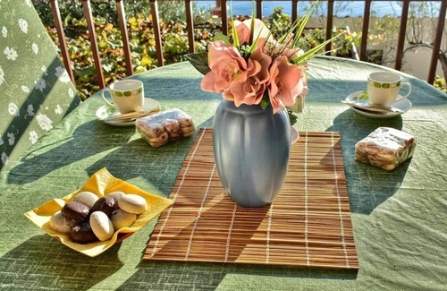 The spacious terrace with sea view invites you to have breakfast, enjoy meals together or sunbathe. Table, chairs, sun lounger and clothes horse are available to you. The terrace is separated by a paravan or plant tubs, so that you can enjoy your privacy. Additionally, you have direct access to the well-maintained garden with Mediterranean flora.