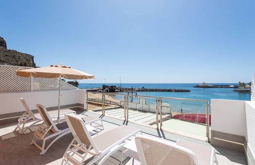 Experience a remarkable beachfront apartment, where you can witness breathtaking sunrises and sunsets while enjoying high-speed unlimited Wi-Fi of 300 Mbps. Located in the serene Playa de Mogán, this apartment is situated within a quiet residential building and features top-quality materials and finishes. The expansive terrace offers spectacular sea views, sun loungers, and a comfortable seating area, providing the perfect setting for relaxation. This contemporary apartment is thoughtfully designed for your comfort, featuring a private terrace with outdoor dining, an equipped kitchen, and a cozy living room with sofas and a Smart TV that includes international channels, covering sports from Spain, the UK, Germany, and more. The accommodation includes a bedroom with a double bed, ceiling fan, and direct terrace access, as well as a second bedroom with two single beds, both equipped with air conditioning and ceiling fans. A modern bathroom with a shower completes the space. With the apartment’s ideal indoor and outdoor spaces, you can enjoy your stay year-round, complemented by stunning views of the beach. For families, a cot and high chair are available upon request. The property is located in a residential area, ensuring tranquility for all guests, with parking available in front of the building at an additional cost. You’ll be just 100 meters from the beach, restaurants, and shops, with golf courses and shopping centers a short drive away, making it an ideal base for exploring the beauty of Gran Canaria. Book your unforgettable getaway now!