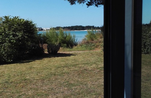 Seaside apartment, feet in the water! on the ground floor with veranda, direct access to the garden of the beach! It consists of a living room (TV & WIFI) with dining area, a small kitchen, a bedroom with a large bed 2 people, a bathroom with toilet and a large veranda overlooking the sea and the tamarisk! garden and private parking (possibility of sleeping for 2 more people in the sofa bed in the living room).