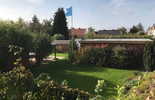 Quiet apartment on a large plot. Comfortably furnished: living room with open kitchen - kitchenette with dishwasher, oven, microwave, refrigerator with freezing compartment; Flat screen TV (satellite), radio, CD / DVD player. Bedroom with double bed (160 x 200) and TV flat screen. Bathroom with shower; Hairdryer. Terrace and lawn with garden furniture. Barbecue area with barbecue. WLAN possible.