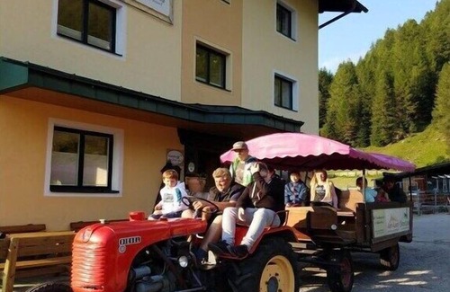 Our newly renovated luxury apartment in the farmhouse belongs to the Alpin Appart equestrian center right next door. The apartment is 105m² in size and offers space for 6 people on two levels. Rustic old (pine bedroom built in 1900) and new come together here. A modernly equipped kitchen with a dining area, a living room with satellite TV and balcony, 3 bedrooms, 1 bathroom with shower/corner bathtub and toilet, and 1 separate toilet. For 3-4 people, there are two bedrooms; for 5-6 people, there are three bedrooms. As a guest in the farmhouse, you can use all the services of the main house, such as: bread delivery, lounge, playground, petting zoo, and llama and alpaca hikes. Dogs are not allowed in the farmhouse.