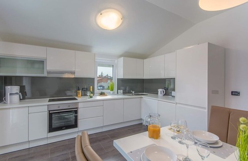 Apartment Jakov III is one of three apartments in the Silver holiday house. It extends over the entire first floor of the house and has a view of the pool. It consists of a fully equipped kitchen with kitchenware, a comfortable living room with a dining room, two bedrooms with a double bed and one with two single beds, and a bathroom with a shower and a washing machine. The apartment also has a balcony with garden furniture and a pool view. The apartment covers an area of 120 m2 and offers you everything you need for a relaxing vacation with family and friends. Guests have access to a common pool and garden, with a barbecue area with garden furniture and one parking space for each apartment in the house. The apartment is in Varvari, a quiet suburb of Poreč, only 3 km from the city center and 3 km from the first beaches. Near the house, there is a bakery, a café, a children's playground and a famous Istrian tavern known for its very tasty dishes. Our neighborhood is extremely quiet and time of peace is strictly respected, and this facility is ideal for a peaceful vacation. We want to encourage younger groups of people who still want a different form of vacation to choose another facility or to strictly adhere to the rules of good behavior.