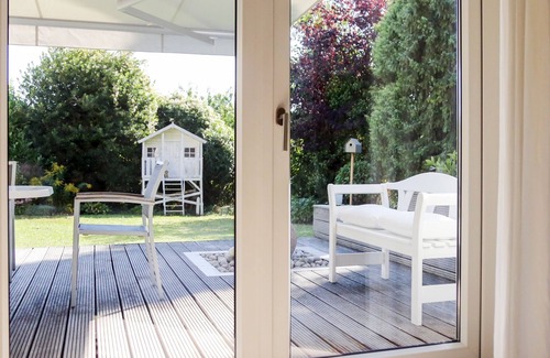 The open-plan apartment with a large wooden terrace (30 m²) and water feature is located on the garden floor of the owners' detached house. It is easily accessible via a small staircase with a separate entrance, with a stair lift on request. Ideal for 2 people, crib available on request. Dog on request (and for a fee). Next to the large, light-flooded living/bedroom with sitting area including TV and audio system and direct access to the terrace (illuminated, electric awning) is the fully equipped eat-in kitchen with dishwasher, fridge, coffee machine, microwave, ceramic hob and oven, bubble machine ... Adjacent to this is a small, fine shower room. Separate WC, hallway & checkroom area. Bookshelf and CD rack. WLAN (inside and outside). Garden furniture & cushions. Garden barbecue on request.