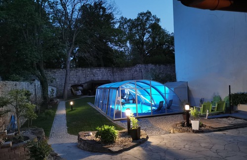 Best-rates for the Mühlhausen apartment starts from $286 per night with includes Child Friendly, Laundry, Wheelchair Accessible, Parking, Pet Friendly, Balcony/Terrace, Accessibility, Security/Safety, Bedding/Linens, Fireplace/Heating, Barbecue/Outdoor Cooking, Kitchen, Internet, Pool, TV, Wellness Facilities with all other facilities. Vacation Cottage™ provides a diverse array of lodging choices for every kind of traveler. We aim to pair each traveler with their ideal cabin, resort, or rental, ensuring a pleasant and satisfying stay with all necessary amenities.