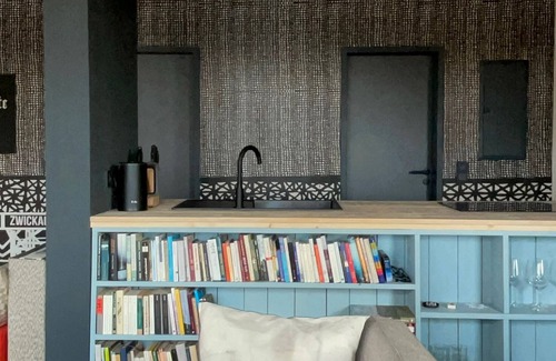 In the middle of the hilly landscape of the Westerzgebirge lies the listed four-sided farm Stall & Sterne. The former stable building has been opened up to the south and now offers three individual, artistically designed vacation apartments. All guests can meet in the shared self-service house bar "Zum Roten Ochsen".