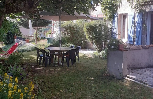 The holiday apartment Gite Le Tilleul in Lespéron is the ideal accommodation for a relaxing holiday with mountain views. The 90 m² property includes a living room with three sofa beds (two for one person and one for two people), a well-equipped kitchen with a table for four people, a dining room with a table for six to eight people, a bedroom with two double beds and a bathroom with WC. It can thus accommodate up to eight people. Additional amenities include a TV and children's books. This accommodation stays cool as it is located in a renovated farmhouse. The property features a private outdoor area with a large shaded garden, a covered terrace with table, sun loungers and barbecue. A second stone table seats four people, in the shade or sun. Dogs are allowed, one dog per stay and under certain conditions. Please bring a dog mat.
