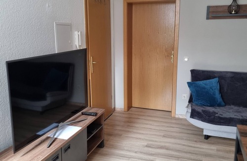Located in Mühlhausen thüringen, the holiday apartment Lehn dich zurück has everything you need for a relaxing holiday. The 3-storey property consists of a living room with 2 sofa beds for one person each, a fully-equipped kitchen, 1 bedroom and 1 bathroom and can therefore accommodate 4 people. Additional amenities include high-speed Wi-Fi (suitable for video calls), a smart TV with streaming services, a washing machine, a cot (can also be converted into a junior bed) as well as children's books and toys.