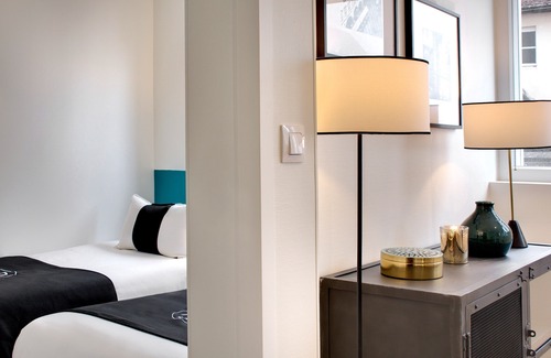 This apartment is located in the building adjacent to the Hôtel des Ducs, on the 1st floor, courtyard side. You are independent but benefit from the hotel services if you wish. We took great pleasure in renovating this 61m2 apartment located in the historic center of Dijon and we will be happy to welcome you and advise you.