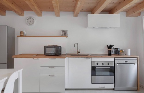 The house is equipped with Wi-Fi, TV, washing machine, dryer, and a dedicated smart working station. A crib and high chair are available for families.