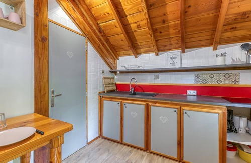 Overlooking the Alps, the holiday apartment Chalet Myosotis in Vaulnaveys-le-Bas impresses with its fantastic view. The 36 m² property includes a living room with a sofa bed for one person, a kitchen, two bedrooms and a bathroom, accommodating up to six people. Additional amenities include Wi-Fi, a TV and air conditioning. A table tennis table is also available on site. A baby cot can be provided. Bath towels are not included. This holiday rental features a private covered terrace, ideal for relaxing evenings. Cleaning and bed linen are not included but can be offered as an option for an extra fee payable on site.